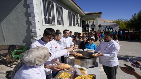 Kermesten elde edilen gelirle okul bahçesine yeni bir çeşme yaptırıldı ve çeşme açılışının ardından 200 öğrenciye yemek ikramında bulunuldu. Ayrıca, Üniversitemiz yönetimi tarafından hazırlanan hediye paketleri de öğrencilere hediye edildi.